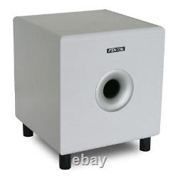 Frequency response : 20Hz - 20.000Hz. Dimensions (L x W x H): 260 x 215 x 980mm. BBA5582 - Active Subwoofer Speaker, 8 for Home Theatre Surround Sound, SHFS08 White. Fenton's SHFS08W is a HiFi subwoofer with a sleek white finish that blends well with the decor of any room. This home audio subwoofer features a downfiring 8-inch driver that is placed at the bottom of the unit.