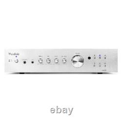 This two-channel HiFi stereo amplifier is a perfect option for your home entertainment and music requirements. It provides various connectivity options, including Bluetooth, and produces an excellent sound, making it ideal for home use. Equipped with a Bluetooth receiver, this home audio amplifier allows you to wirelessly connect your smart device to listen to your favourite tracks. It also features several input options to connect your devices, including; RCA line, DVD, optical, coaxial, and a 3.5mm AUX. Furthermore, there are two speaker output channels, a headphone, RCA line and a subwoofer output option, to connect an active subwoofer to your setup if required.The amplifier provides full control over your sound system, with treble, mid, bass, and balance controls. This HiFi stereo amplifier has a modern and stylish design that complements any home setting, with a solid metal front and brushed stainless steel finish.