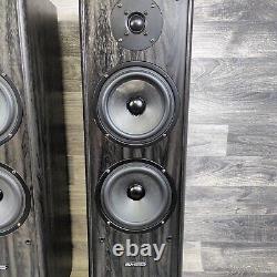 Pair Of Acoustic Solution AV120 Floor Standing Speakers Black Ash & Front Covers. Condition is Used & Fully Working, please do check all photos before ordering as the item you see is the one you'll receive plus viewing all of photos will give you a better understanding of the overall cosmetic condition. The cover will need a clean as they've been in storage as I didn't use them. If you have any questions or queries please feel free to drop me a message.