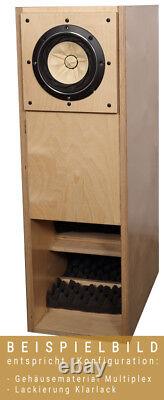 Construction plan for the housing. Wood cutting must be built and painted by yourself. The product image serves as an orientation as to what the finished speaker may look like. This model is still available as a housing kit (with wood cutting), as a kit with a finished housing or as a finished speaker, check out our other offers.