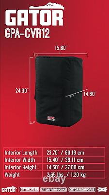 Speaker Slip Cover Designed to Fit the Hottest 12 Speaker Cabinets on the Market including the QSC K12, iQ12 and Yamaha DXR12. Rugged Water Resistant Polyester Construction and Built-In Waterproof Backing. Protective, Padded Interior with Soft Lining.