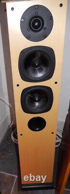 Castle Richmond Floor Standing Speakers. Beautiful oak cabinets, attractive peice of furniture, enhances any room. Stored and unsued for years, used in recent years only. The speakers have Castle floor standing mount with 4 pointed bolts / can be positioned on a peice of thin hardboard no problem. Black fabric detachable speaker grills.