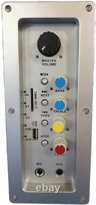 Mic Input socket with Mic Volume & Echo Control. LED Colour Changing RGB Lights. Stream music direct from radio, YouTube, Spotify, Deezer or Amazon Music etc..