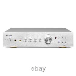 Furthermore, there are two speaker output channels, a headphone, RCA line and a subwoofer output option, to connect an active subwoofer to your setup if required. The amplifier provides full control over your sound system, with treble, mid, bass, and balance controls. This HiFi stereo amplifier has a modern and stylish design that complements any home setting, with a solid metal front and brushed stainless steel finish. Additionally, the amplifier comes with a remote control, allowing you to easily operate it from a distance.