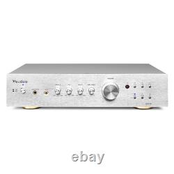 The amplifier provides full control over your sound system, with treble, mid, bass, and balance controls. This HiFi stereo amplifier has a modern and stylish design that complements any home setting, with a solid metal front and brushed stainless steel finish. Additionally, the amplifier comes with a remote control, allowing you to easily operate it from a distance.