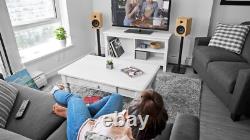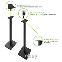 To further improve clarity, their rotating top plates ensure your speakers are always pointed towards you. No one likes cable clutter. Use the hollow support towers to easily route your power cable and speaker wire, ensuring they remain concealed. Maintain stability on any surface.