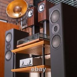 The result, is that the mid frequencies stand out from the audio signal and are delivered with fantastic detail and realism. The top plate is constructed from a premium aluminium, ensuring excellent stability for the cabinets that are supplied in a selection of classical, sleek finishes. A visible phase plug has been added to improve the expansion in the 10kHz-20kHz range, that reduce any potential loss of high frequency information that emanates from the middle of the diaphragm. The phase plug main feature is therefore to improve the your enjoyment of high frequency detail information. The QX-3 MKII speakers use an inverted driver geometry, with the bass-midrange and treble units being designed in such a way that the soundwaves merge at the level of the listener's ear, resulting in excellent time alignment. The serrated driver surrounds are used to improve the airflow, and analysis and detailed measurement, show the driver and port performance to be smoother than ever before. General Description 2-way Floorstanding Speaker. Bass Driver 5 (135mm) Long Fiber Composite Cone x2. Treble Driver 1.5(38mm) Textile Ring Dome. Nominal Impedance 4 O (compatible 8O). Frequency Response (+/-3dB) 42Hz 24kHz.Cabinet Volume (in litres) 35L. Height (on plinth) (950+20)mm. Depth (with terminals) (300+10)mm.