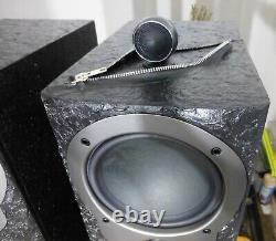 Easy to drive, nice sounding with strong punchy bass. Works perfectly, all drivers in very good condition. I spend quite a lot of time giving them a second life and now is time to say goodbye. On the top, a leather effect with zips. On the sides, a fibreglass effect. On the front, a sort of rock effect. Painted with mid sheen Dulux black paint. Perfect for someone who is looking for something exceptional to add to their living room. If you have any questions, feel free to ask. Collection only from Woodford Green, East London. Will be demonstrated on collection.Frequency response ± 3dB : 44 - 20000 Hz. Amplifier Requirements : 25 - 150 W.