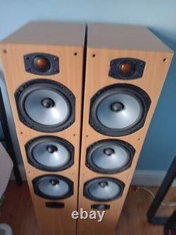 Here is a pair of Monitor Audio Bronze 6 speakers in a light wood veneer finish. These come with their original speaker binding post link bars. Condition report: These speakers are in excellent condition. In use: All drivers working well and the speakers sound great. Summary: A good looking pair of speakers, working perfectly.