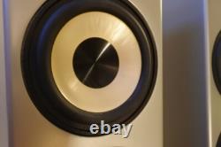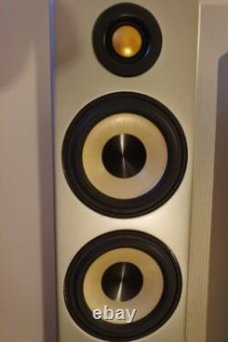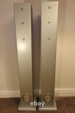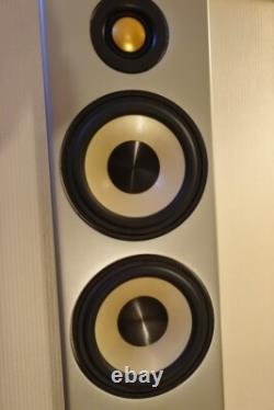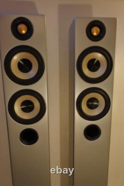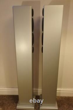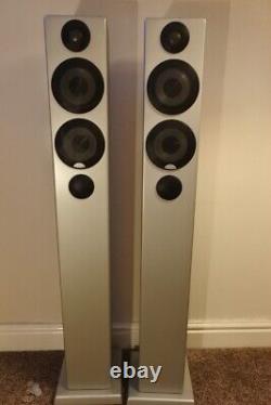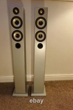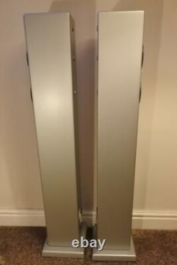 Monitor Audio Radius 270 Elegant Slimline Stereo Speakers-Gloss Silver-Spiked.. Visual Condition as Pictured-Spikes and Pads Included.