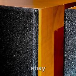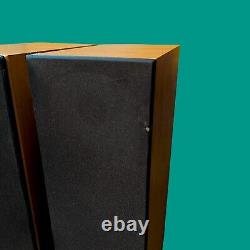 Speakers covers have a few holes on the sides. Housing has a few chips. Note that there are no bridges for bi-wiring.Feet on the sides have. Paint loss, spikes on the feet have been changed to soft pads. Absolutely no issues or faults.