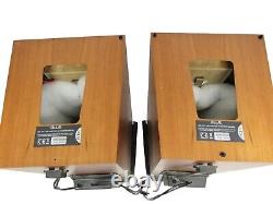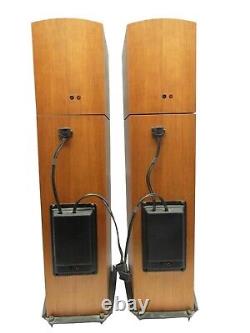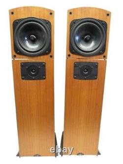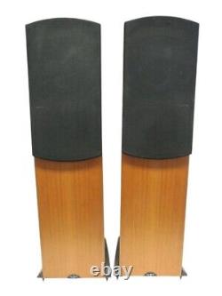 Pair of Naim'Allae' floor standing speakers in cherry wood finish. In used condition with wear as pictured. Missing a few plastic speaker stand offs.