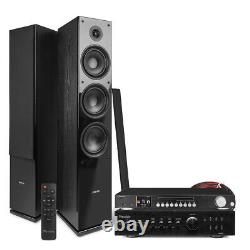 Radio with WiFi, DAB, FM and CD player to connect to the amplifier. All necessary speaker and RCA cables are included. Includes 1x Fenton 100.282 SHF80B Tower Speaker Set 3x 6.5 Black 1x Audizio AD220B 2-Channel HiFi Amplifier Black 1x PD Connex Speaker Cable Kit 10m 2x 0.75mm2 1x PD Connex CX94-05 Cable 2x RCA Male -2x RCA Male 0.5m 1x Audizio 102.240 Ferrara Internet radio DAB+ CD. BBA5339 - SHF80 Floorstanding Hi-Fi Speakers for Home Stereo Sound System 3-Way 6.5 Black. The SHF80 series is a series of elegant and modern stereo loudspeakers which are very suitable for home entertainment applications. The 3-way technology and the perfectly matched audio components ensures that these speakers have a formidable sound quality. The high-quality connection terminals are equipped with gold-plated contacts which ensures perfect signal transmission. Thanks to the tower construction these speakers fit into any corner of the house delivering powerful sound combined with a modern and stylish design. 3x 6.5 Woofer and 1x silk dome tweeter. Frequency Response: 20Hz - 20.000Hz. Dimensions (L x W x H): 242 x 315 x 1096mm.DDA1644 - Audizio AD200B 2-Channel HiFi Stereo Amplifier with Bluetooth, Optical - 200W. The Audizio AD220B 2-Channel HiFi Stereo Amplifier is a top-of-the-line home audio amplifier that is sure to please music lovers and audiophiles who seek high-fidelity sound. This amplifier has a Class A/B design with two channels for a pair of speakers.