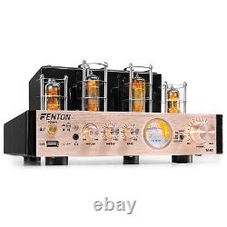 The TA60 HiFi valve amplifier from Fenton is an extremely high-quality amp with chrome details and an aluminium front panel that fits in nicely with your interior home design. It has built-in valve tube preamplifiers, which provide detailed and warm tones when connected to suitable passive speakers.