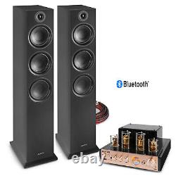Tower Sound System with Floor Standing Speakers and HiFi Valve Amplifier SHF80B. This HiFi tower speaker system can be conveniently set up in a TV room or a home theater. It offers simple-to-use functionality and high-quality sound output suitable for music and entertainment purposes, and includes everything needed in order to set it up. The SHF80B tower speakers by Fenton are included in this floor speaker system. These high-quality passive speakers feature a 3-way design, which ensures that the frequency range of any audio is split efficiently between multiple drivers for a wide frequency output.